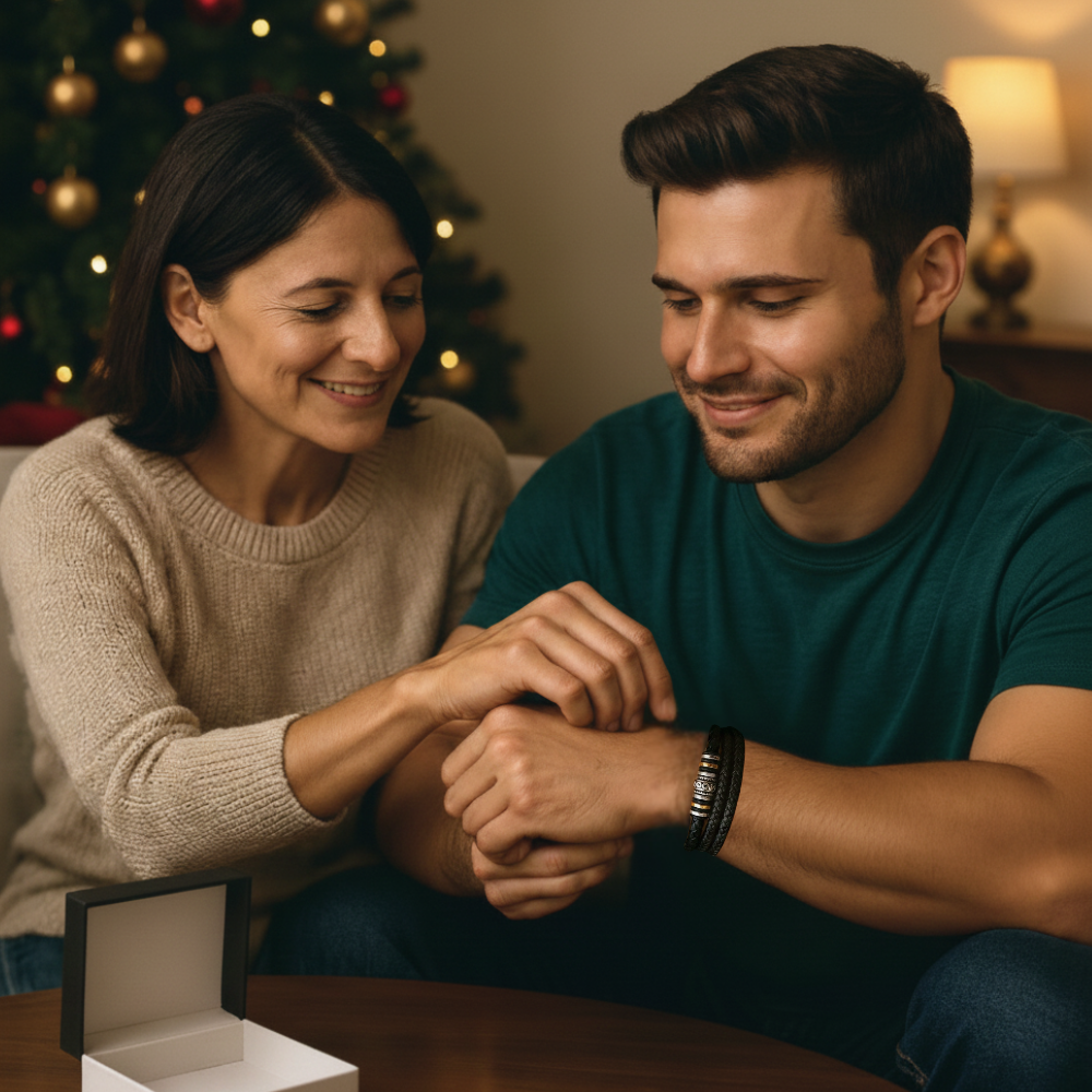 I gave this to my son for his 18th birthday, and he hasn’t taken it off since. It’s masculine and stylish without being flashy — perfect for everyday wear. The leather feels thick and durable, and the magnetic clasp is strong and easy to use. The message card made it extra special.